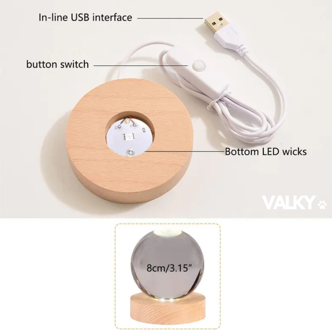 The minimalist wooden base and glowing crystal sphere blend seamlessly with any aesthetic — from cozy and rustic to modern and clean.
