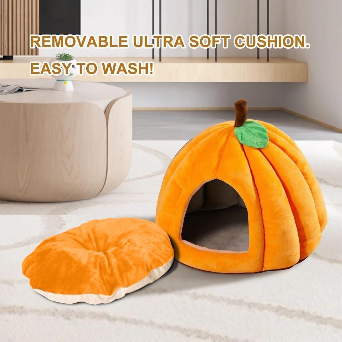 🌟 Enchanting Pumpkin Design: Shaped like a magical pumpkin, the PumpkinCave brings an adorable and festive touch to your home. Its unique design adds a playful charm, making it a cozy retreat for your furry friend while doubling as a cute home décor piece.